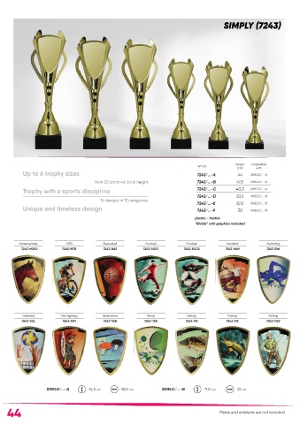 Up to 6 trophy sizes 7243/...-A 44 SHIELD/...-A