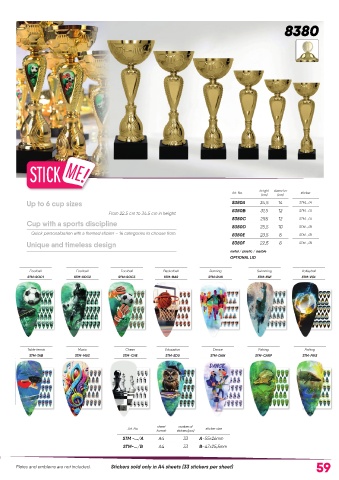Quick personalization with a themed sticker – 14 categories to choose from. 8380E 23,5 8 STM.../B